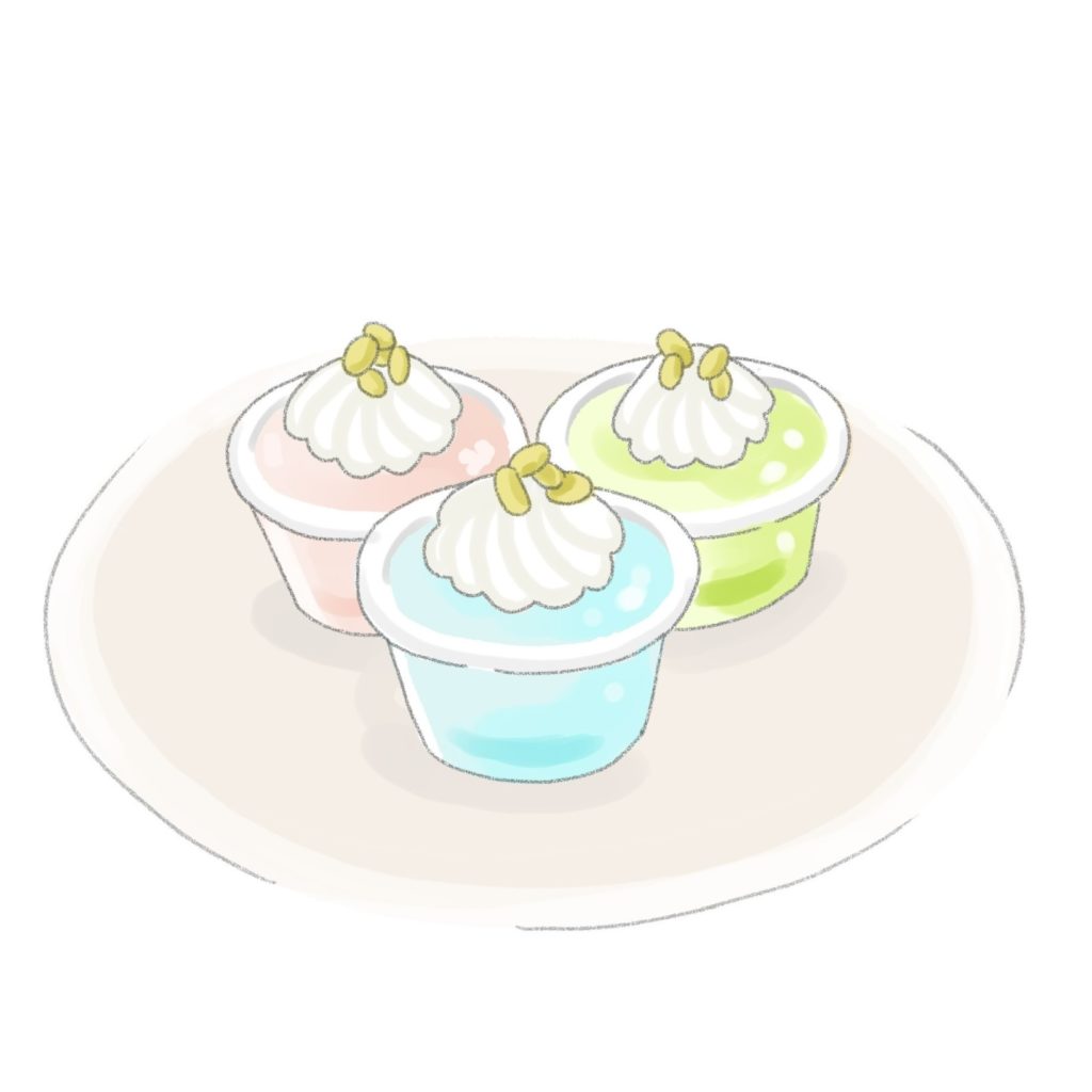 A,見た目はゼリーのようなものですが、ゼリーとはまた違う独特な食感で、ほんのり甘いジャスミンの香りがします。上のココナッツクリームは少ししょっぱいので一緒に食べてアクセントになります。